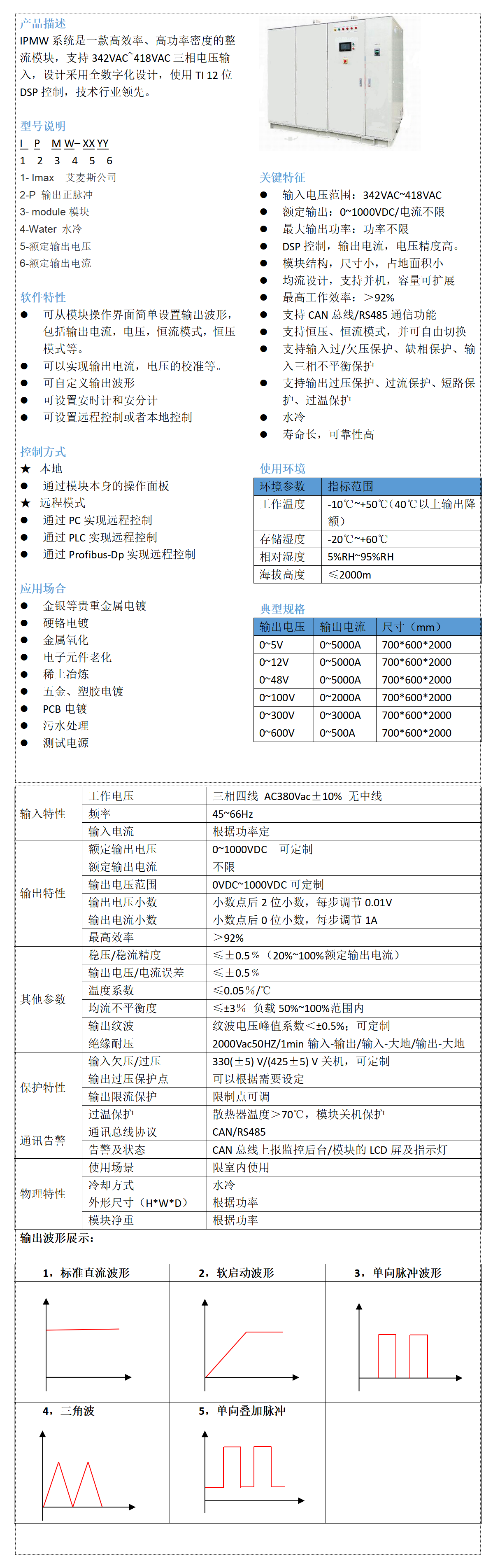 IPMW系統(tǒng)是一款高效率、高功率密度的整流模塊,支持342VAC~418VAC三相電壓輸入,設(shè)計(jì)采用全數(shù)字化設(shè)計(jì),使用TI 12位DSP控制,技術(shù)行業(yè)領(lǐng)先。