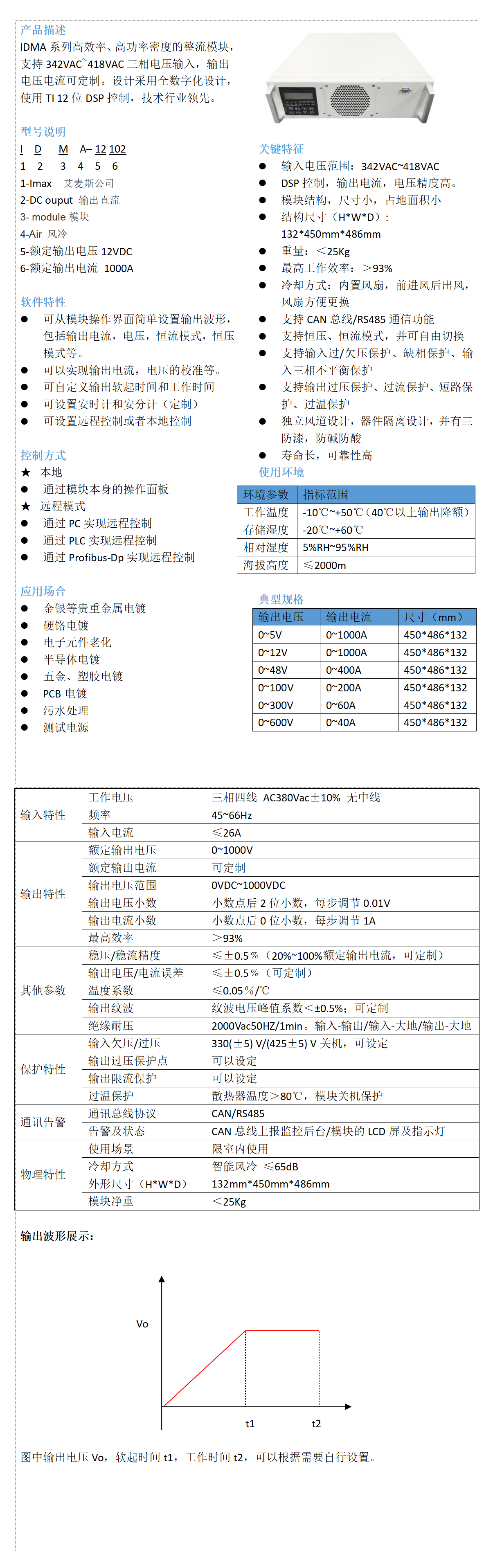 IDMA系列風(fēng)冷整流電源,獨立風(fēng)道設(shè)計延長使用壽命,行業(yè)最先進的DSP數(shù)字控制,軟開關(guān)設(shè)計,效率92%,高效節(jié)能。廣泛應(yīng)用在表面處理,電鍍電泳,陽極氧化,電熱處理,污水處理,單晶硅等