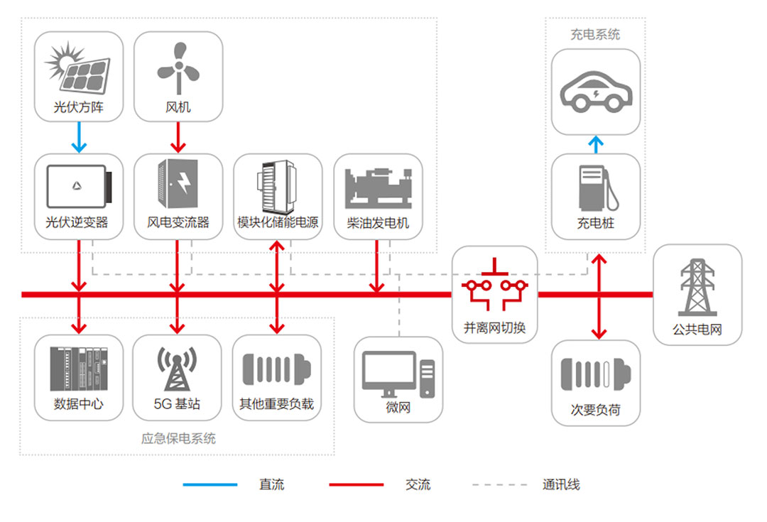 支持離網(wǎng)黑啟動功能,保障停電狀態(tài)下的應急電源供電 光儲微網(wǎng)模式下,平滑新能源輸出,保障微網(wǎng)穩(wěn)定運行 儲能系統(tǒng)可作為備用電源,保障微網(wǎng)安全可靠