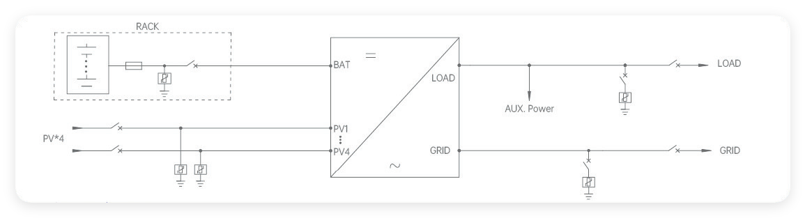 離網(wǎng)額定功率為100kVA和125kVA,能夠在離網(wǎng)狀態(tài)下為負(fù)載提供穩(wěn)定的電力支持,適用于偏遠(yuǎn)地區(qū)、應(yīng)急備用等離網(wǎng)場景。