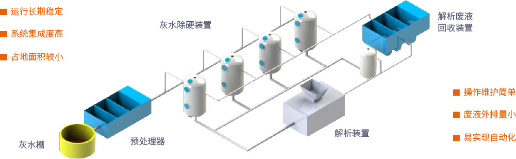實現(xiàn)了廢水回收利用,大幅度減少灰水系統(tǒng)排污量,降低污水處理難度;徹底解決了系統(tǒng)結(jié)垢問題,不存在碳酸根富集問題
