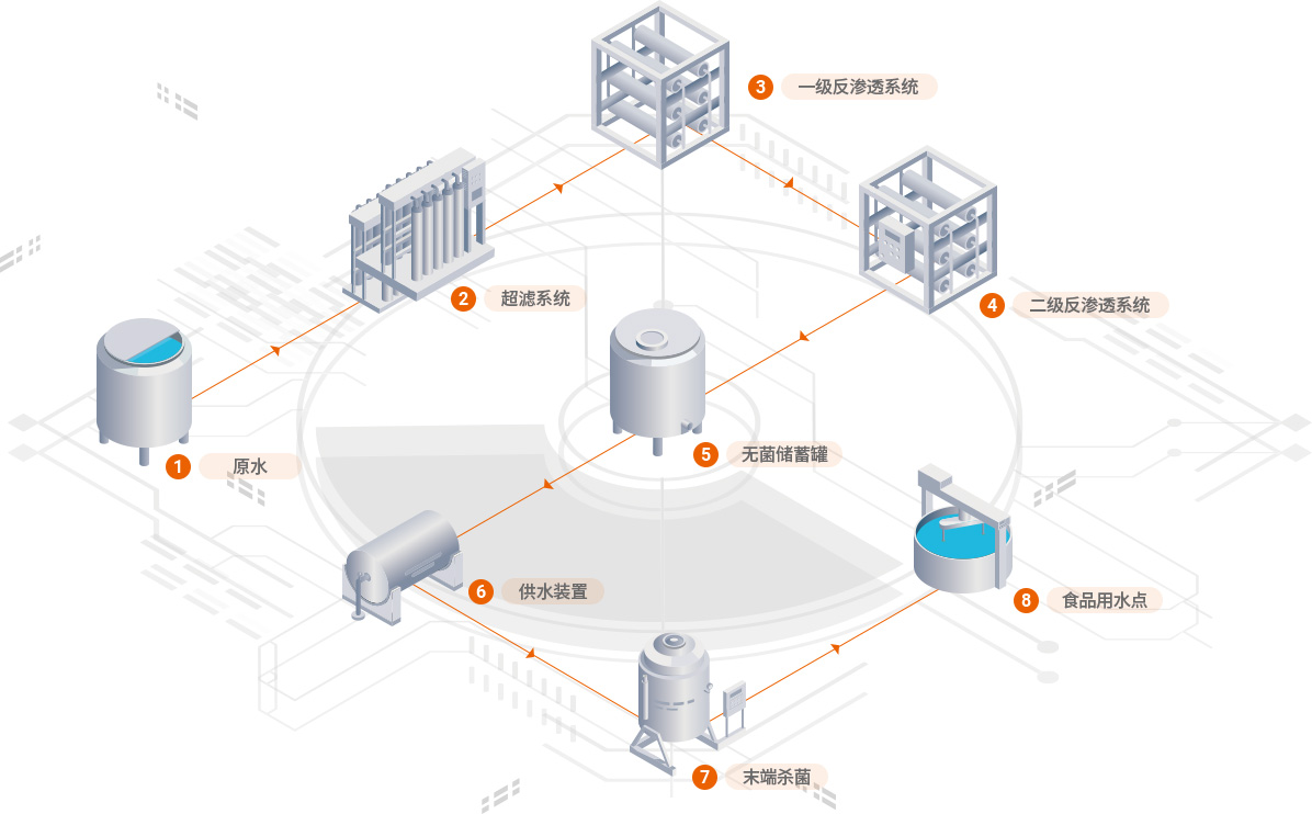 市政自來(lái)水已經(jīng)不能滿足食品、飲料、乳制品等行業(yè)用水的要求。中國(guó)正在食品飲料行業(yè)實(shí)施食品生產(chǎn)許可證制度(SC),規(guī)定中要求工藝水及成品水均需要用凈化后的水。