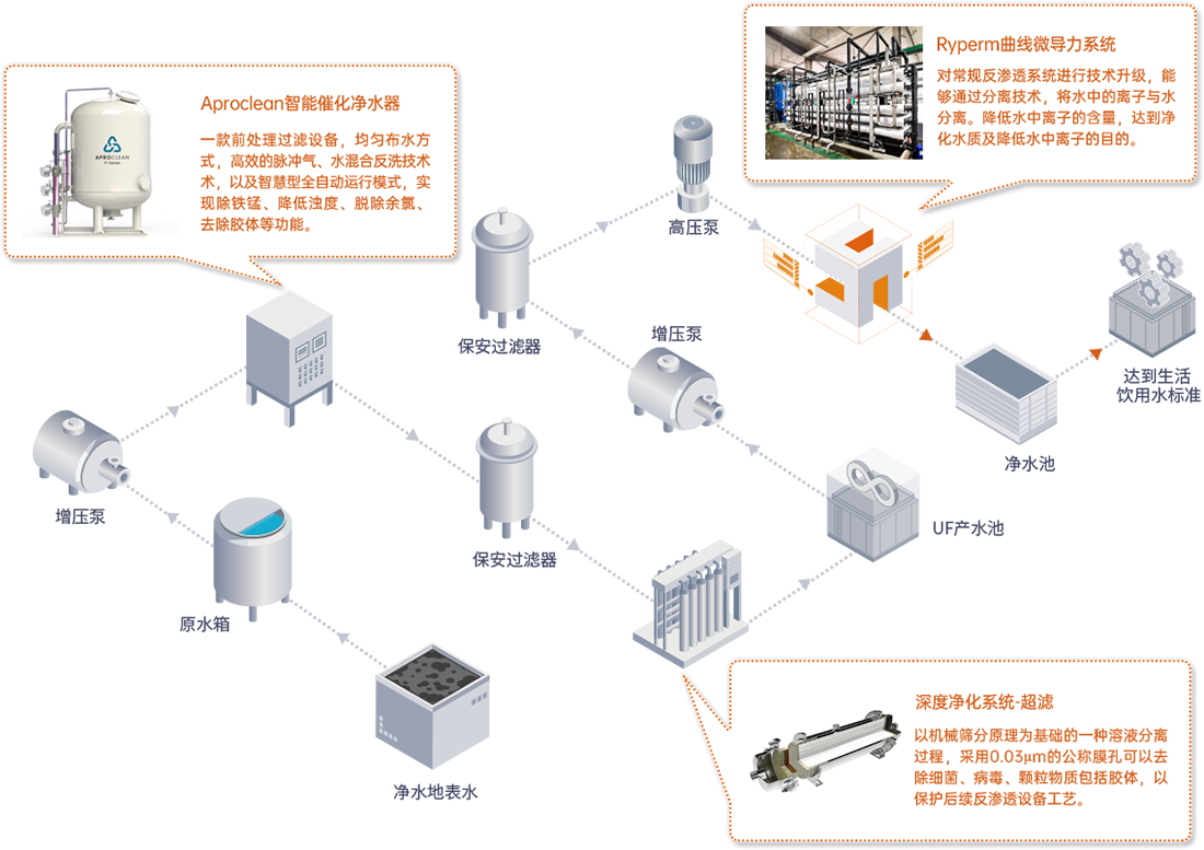 利用UF/RO膜處理后的水質(zhì)達(dá)到了符合國(guó)家標(biāo)準(zhǔn)的飲用水標(biāo)準(zhǔn)