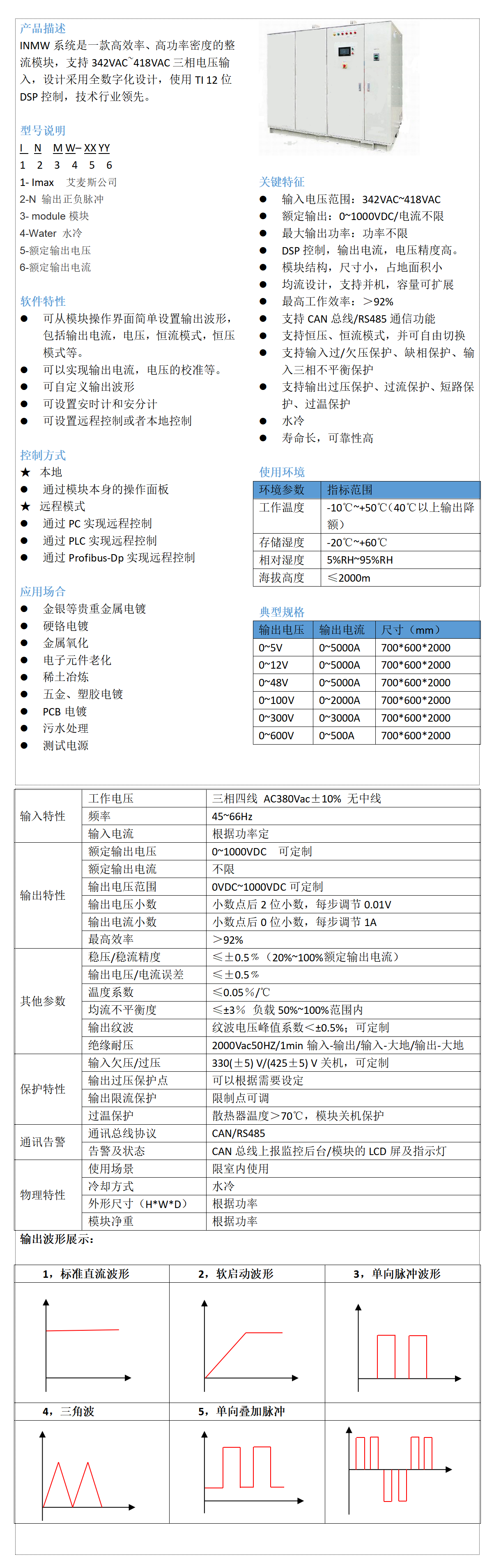 INMW系統(tǒng)是一款高效率、高功率密度的整流模塊,支持342VAC~418VAC三相電壓輸入,設計采用全數(shù)字化設計,使用TI 12位DSP控制,技術行業(yè)領先。
