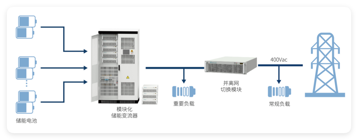 采用靜態(tài)旁路開關(guān)切換,可實現(xiàn)并離網(wǎng)無縫切換,保證重要負載供電可靠性;