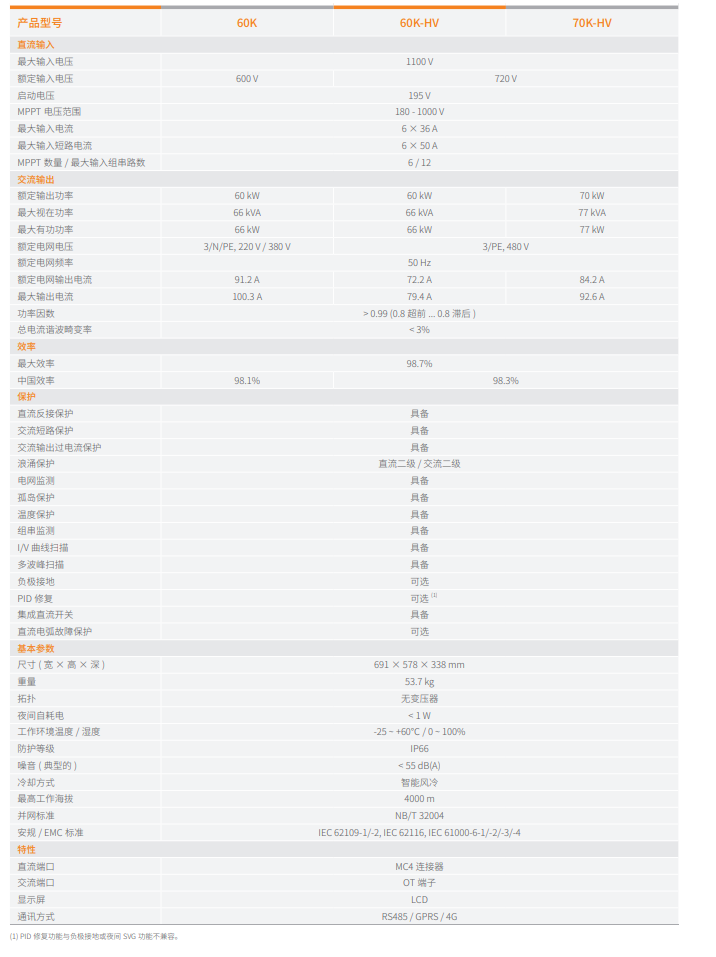 具備IP66防護等級,能夠有效防止灰塵和水的侵入,確保逆變器在惡劣的環(huán)境條件下仍能穩(wěn)定運行。無論是多塵的工業(yè)區(qū)域還是潮濕的沿海地區(qū),該逆變器都能可靠工作,減少因環(huán)境因素導致的設備故障和維護成本。