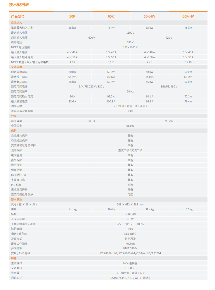 單串輸入電流大幅提升至20A,并且支持150%以上的超配。這一特性使其能夠充分適配各類高效組件和雙面組件,將組件產(chǎn)生的電力高效轉(zhuǎn)換為可用電能,顯著提升光伏系統(tǒng)的整體發(fā)電量,為工商業(yè)電站帶來更高的經(jīng)濟(jì)收益。
